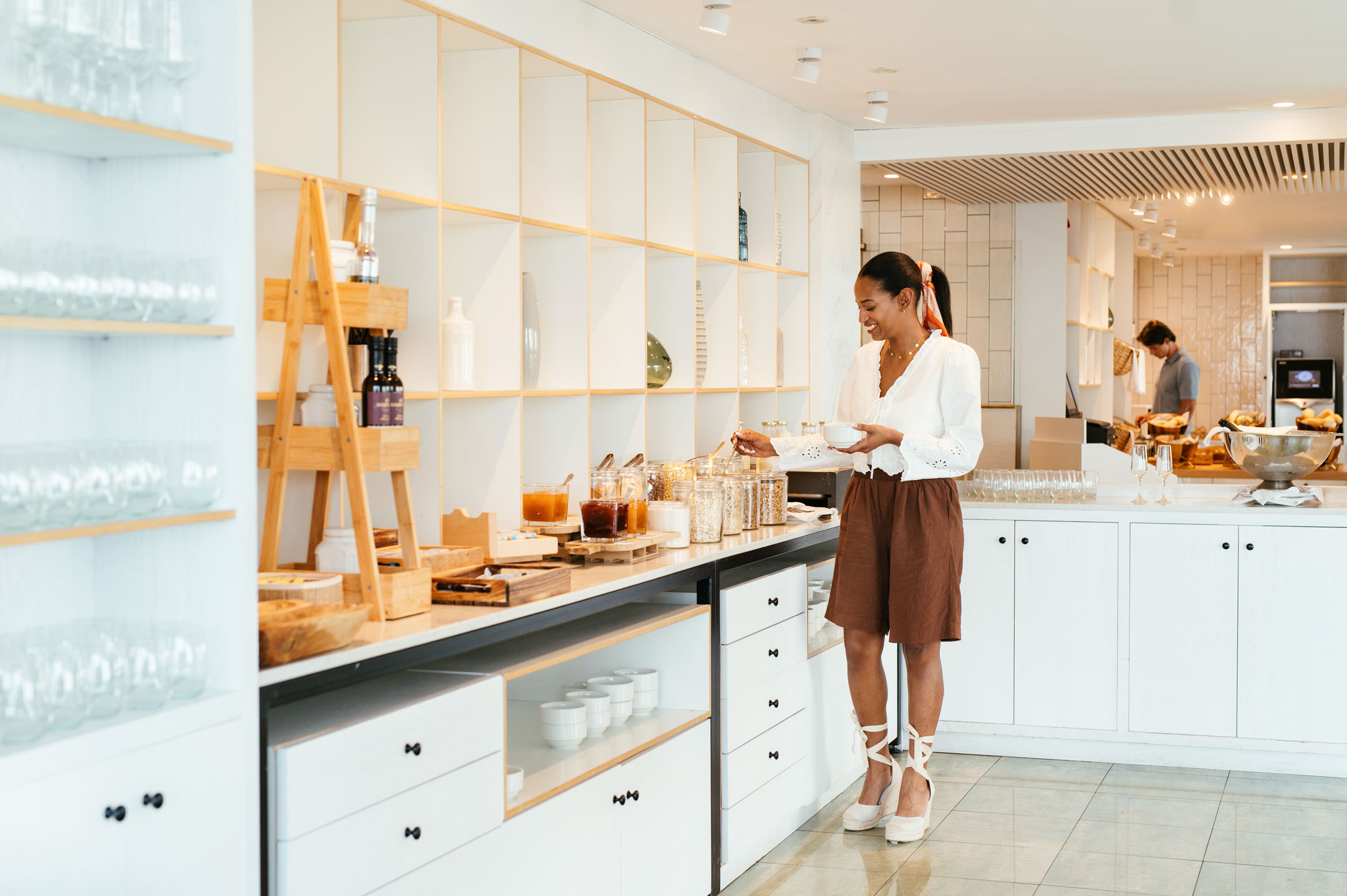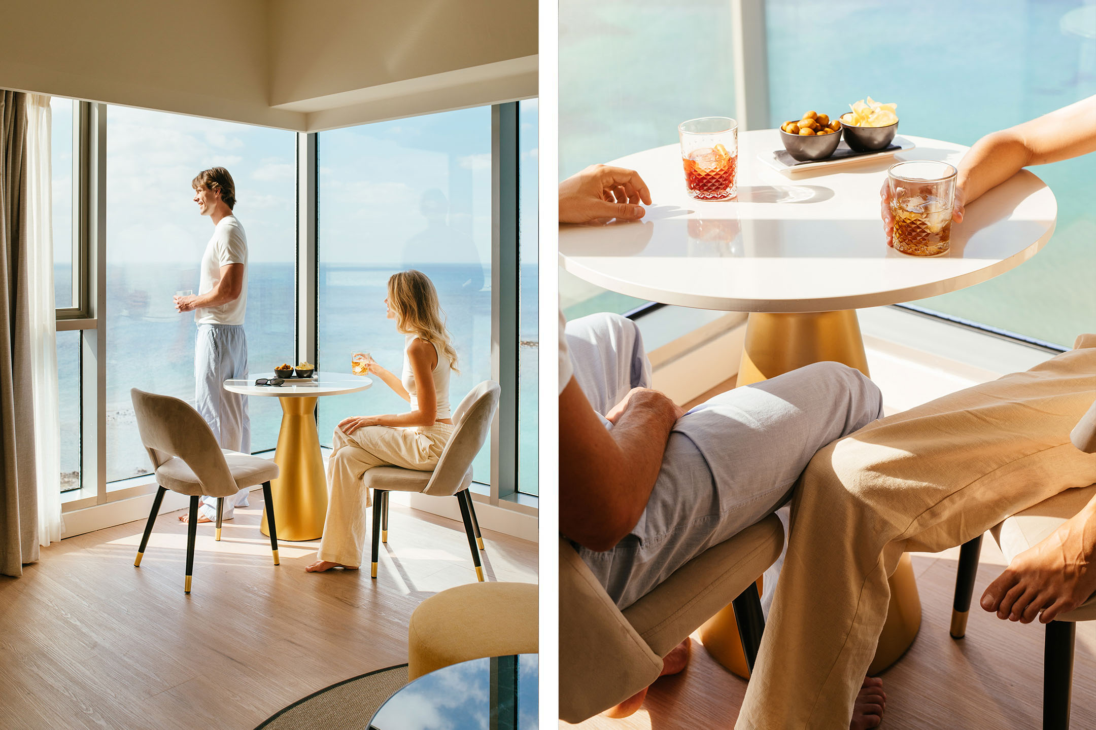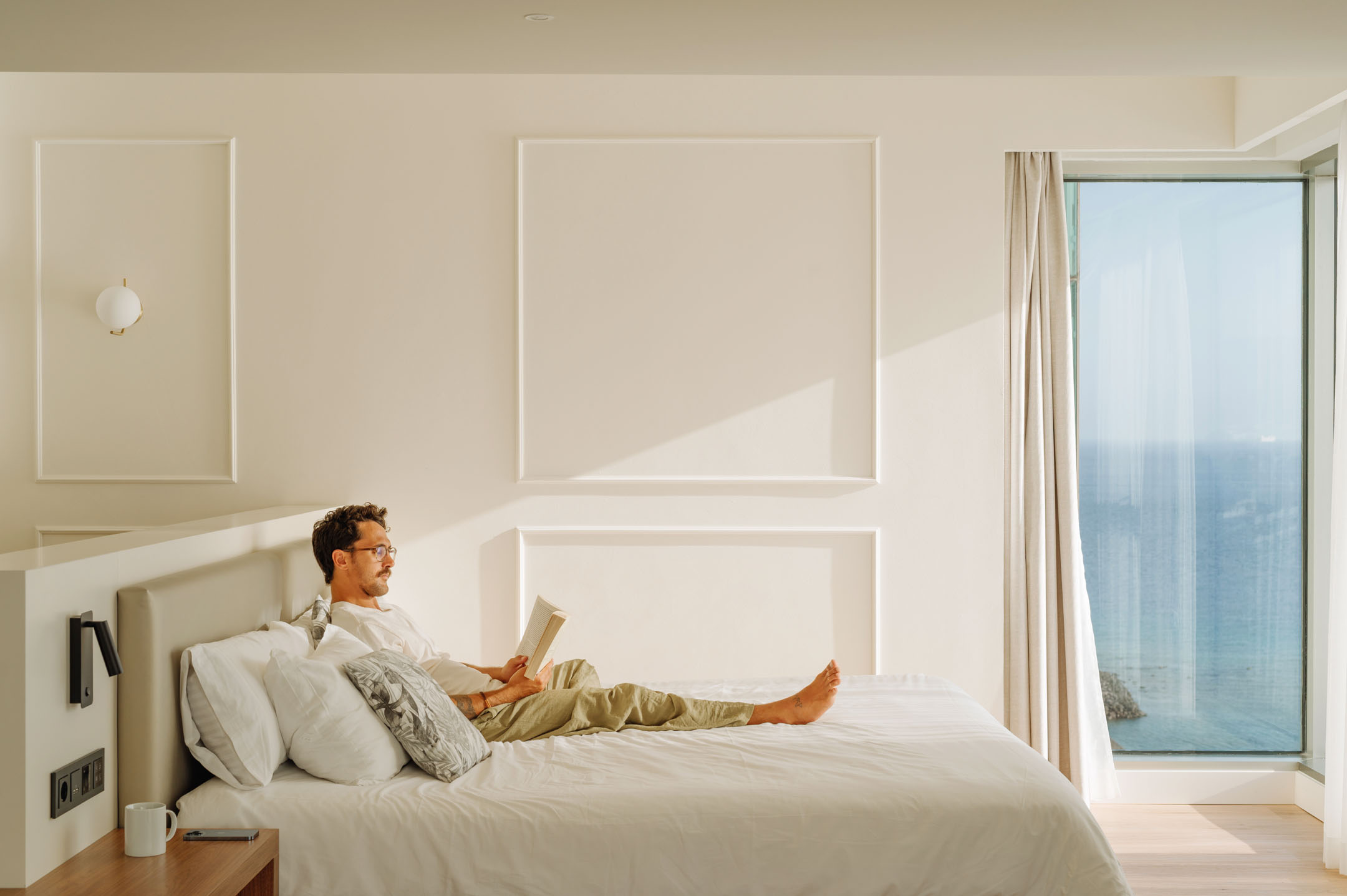 La fotografía de habitaciones buscó transmitir claridad espacial, relación con la luz natural y continuidad visual con el entorno marítimo. En los espacios comunes, el objetivo fue reforzar la experiencia del huésped mediante escenas donde la presencia humana aparece integrada dentro del ritmo arquitectónico del edificio sin desplazar el protagonismo del espacio.