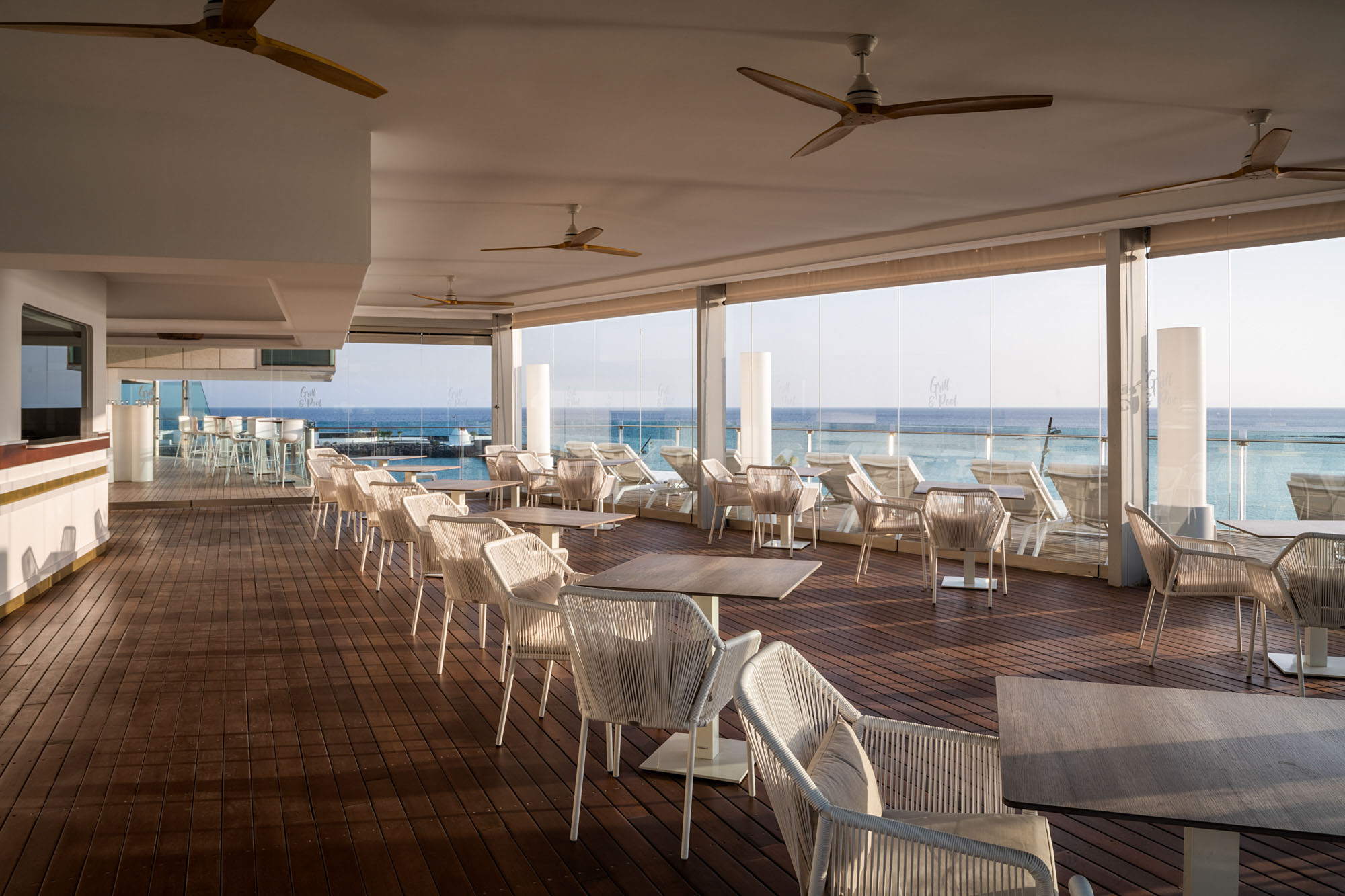 Además de las zonas interiores, la campaña incluyó exteriores y vistas del hotel en relación con el litoral de Arrecife, situando el edificio dentro del contexto específico de Lanzarote. Esta relación entre arquitectura y territorio es un elemento central en nuestra fotografía hotel Lanzarote.
