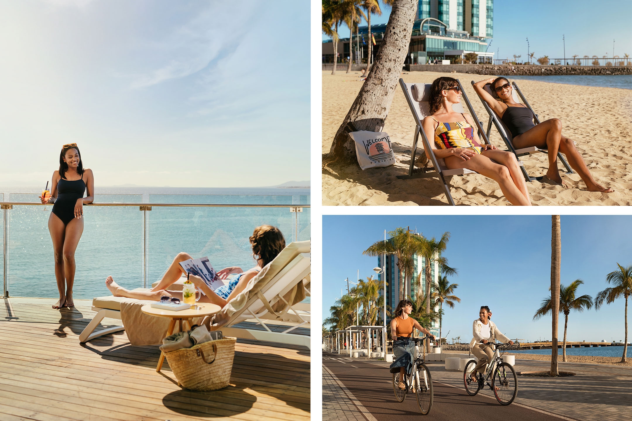 Situado en primera línea de costa en la capital de Lanzarote, el Arrecife Gran Hotel mantiene una relación directa con el paisaje litoral y la escala urbana de la ciudad. La campaña se planteó a partir de esa condición, trabajando el hotel como arquitectura habitada y no solo como contenedor turístico.